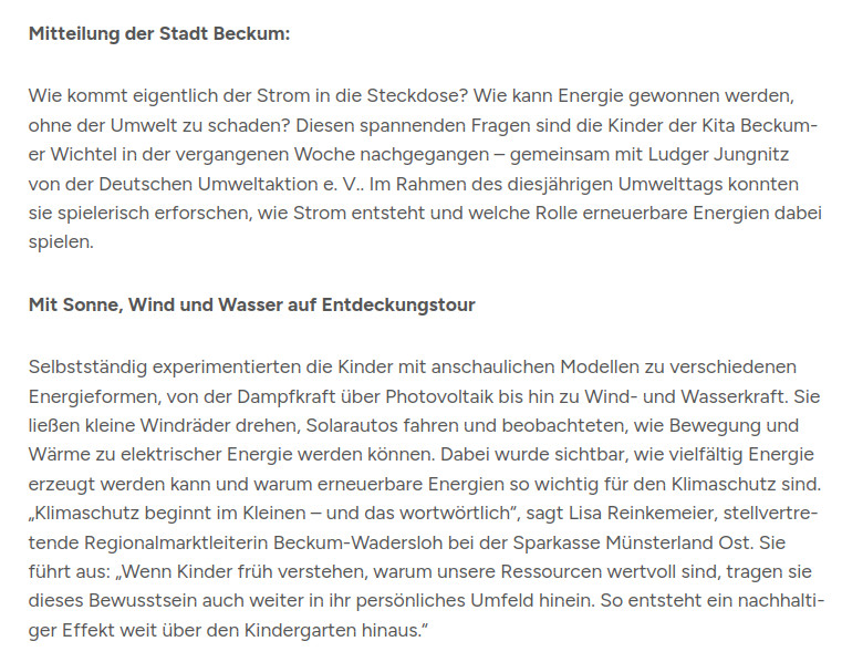 09.06.2009 Kindgerechter Umweltunterricht - Mitteldeutsche Zeitung